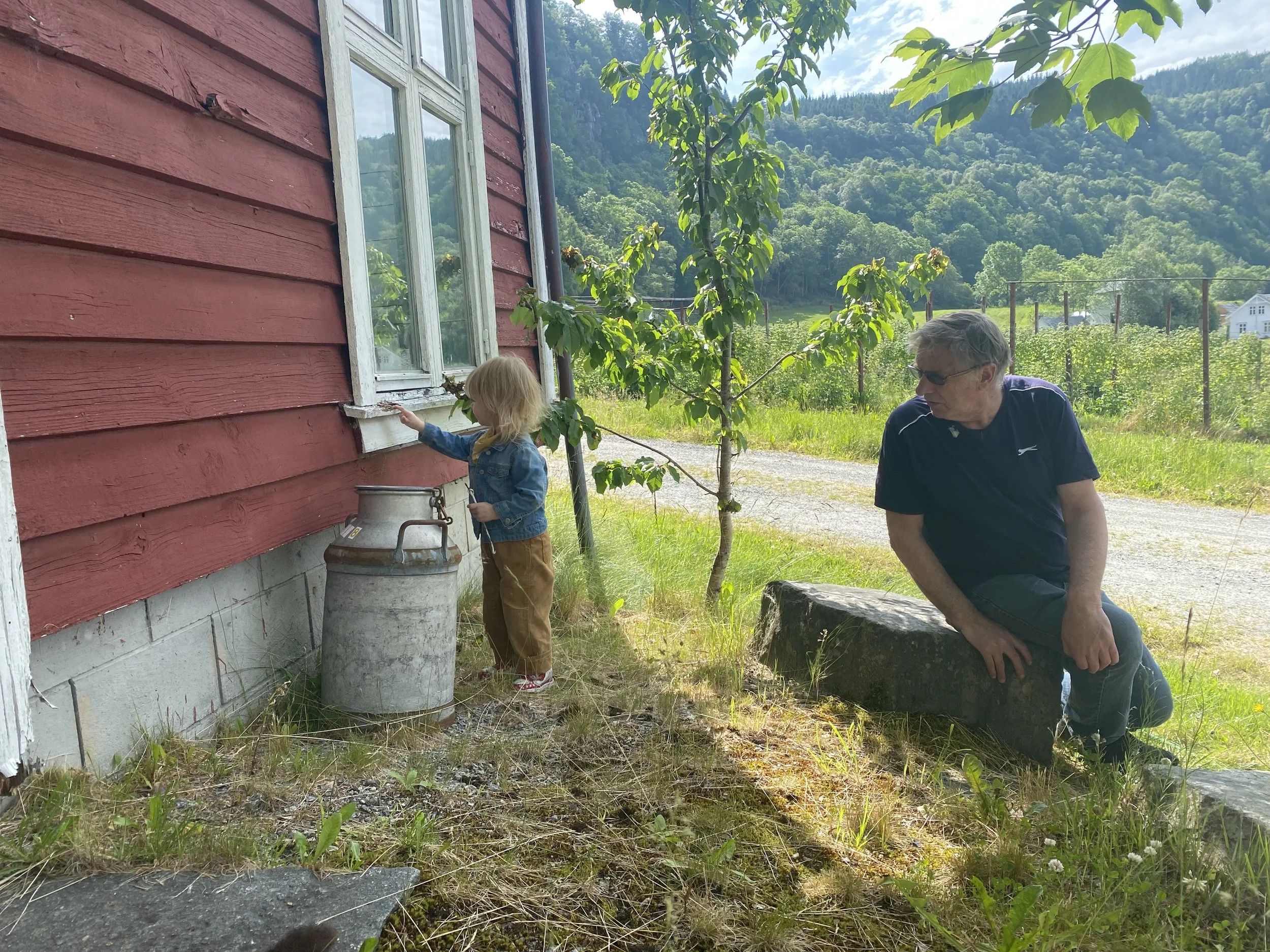 Bak Fusabær står ein liten familie på fire som elskar bringebær, natur og sommar. Me flytta frå Voss til Fusa og overtok garden sommaren 2023.